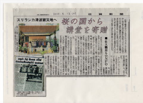更に2010年3月に同学校に、演劇や集会等に利用出来るステージを「スリランカと佐賀の会」と「山崎キョミ基金」の協力のもとで建てました。それらの活動の様子は地元の新聞でも大きく取り上げられています。